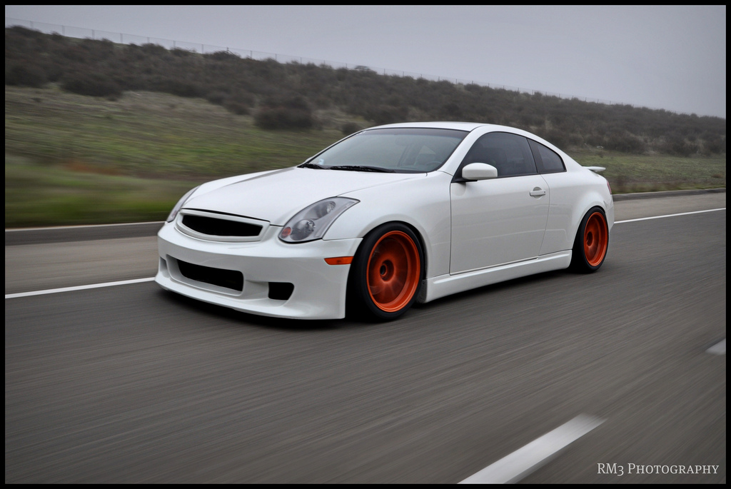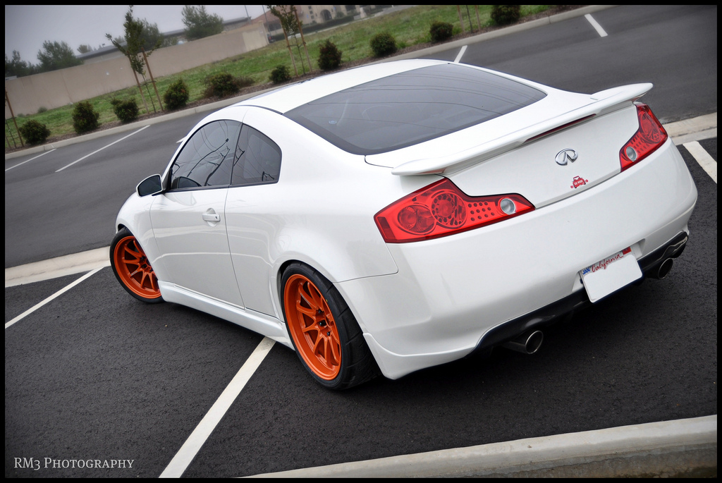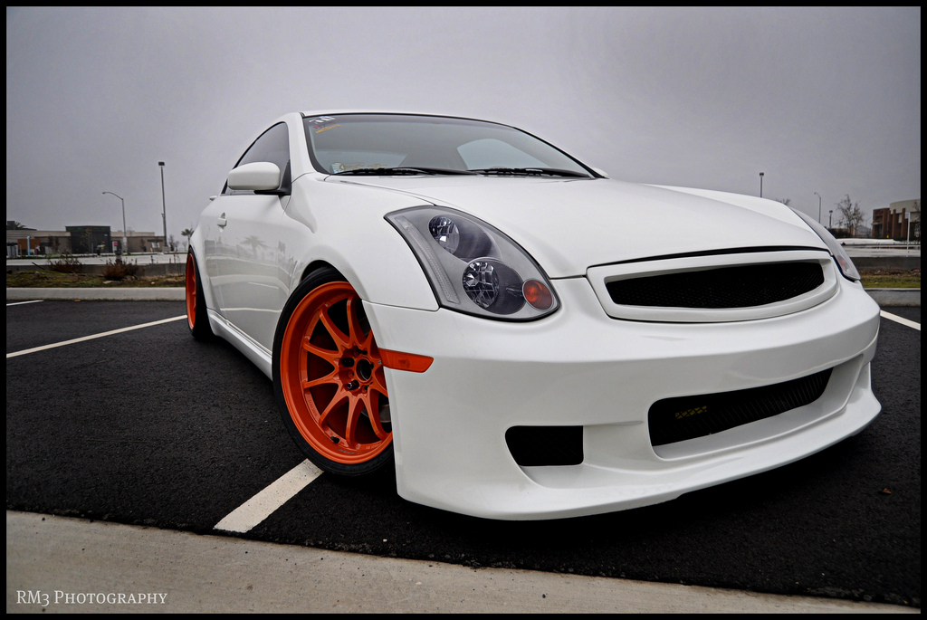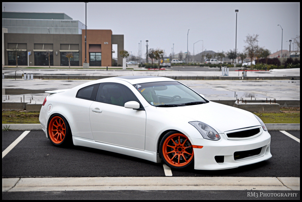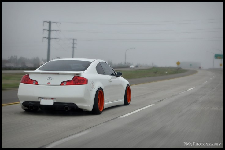 These photos are over a year old, so you might have seen them somewhere on the net, but I like to take this time to finally post them on my blog. This super clean and super bright G35 is owned by my good friends Angel and Lucas who’s been into the tuning scene since the high school days back in early 2000s. This stanced G is rockin some rare 18×10.5 +18 set of orange CE28, which are wrapped around some 295/30 Advan A048 rubbers.