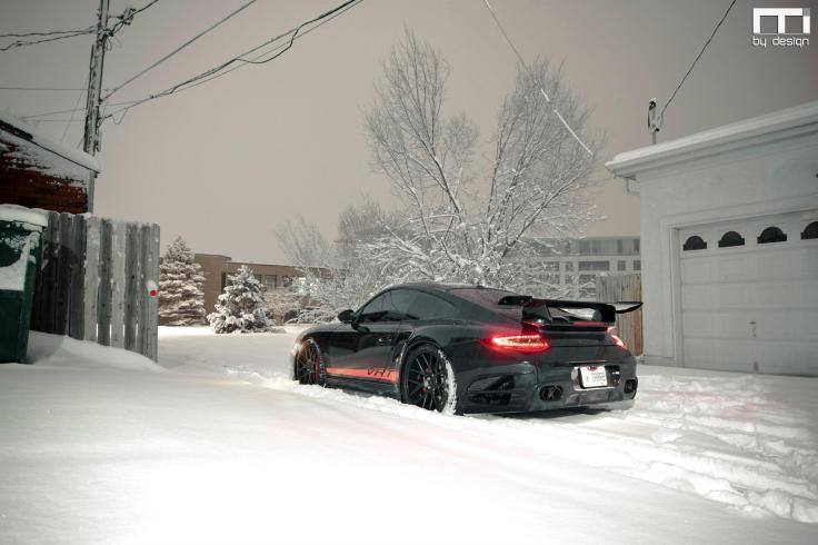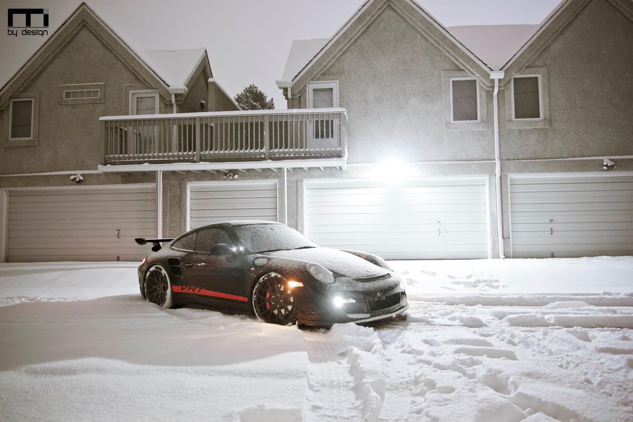 Now here is an unorthodox shoot. A VRT Porsche stuck in the snow…..Lots of holiday spirit without even trying 🙂
