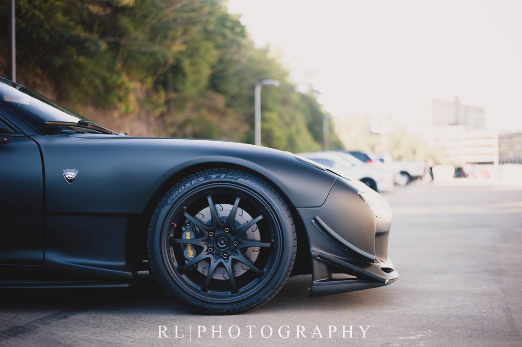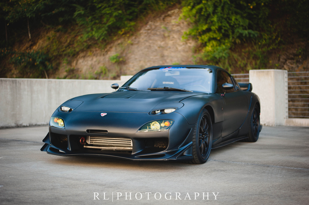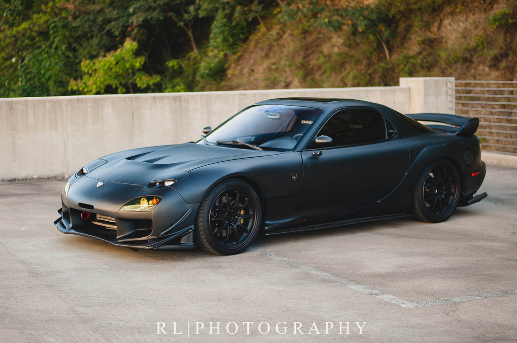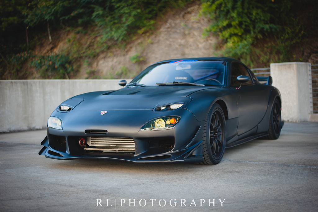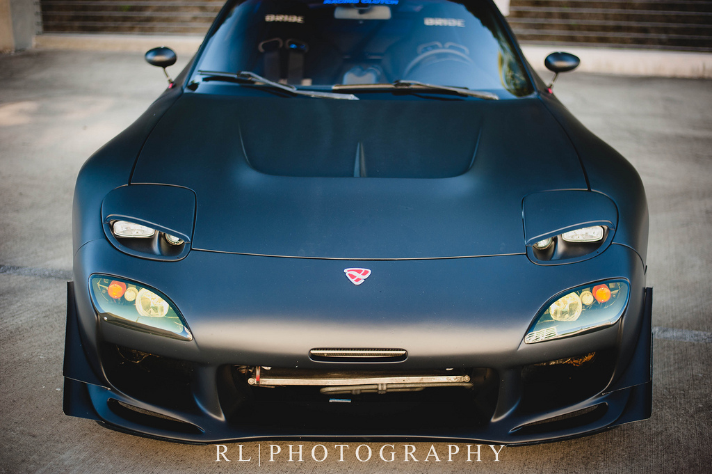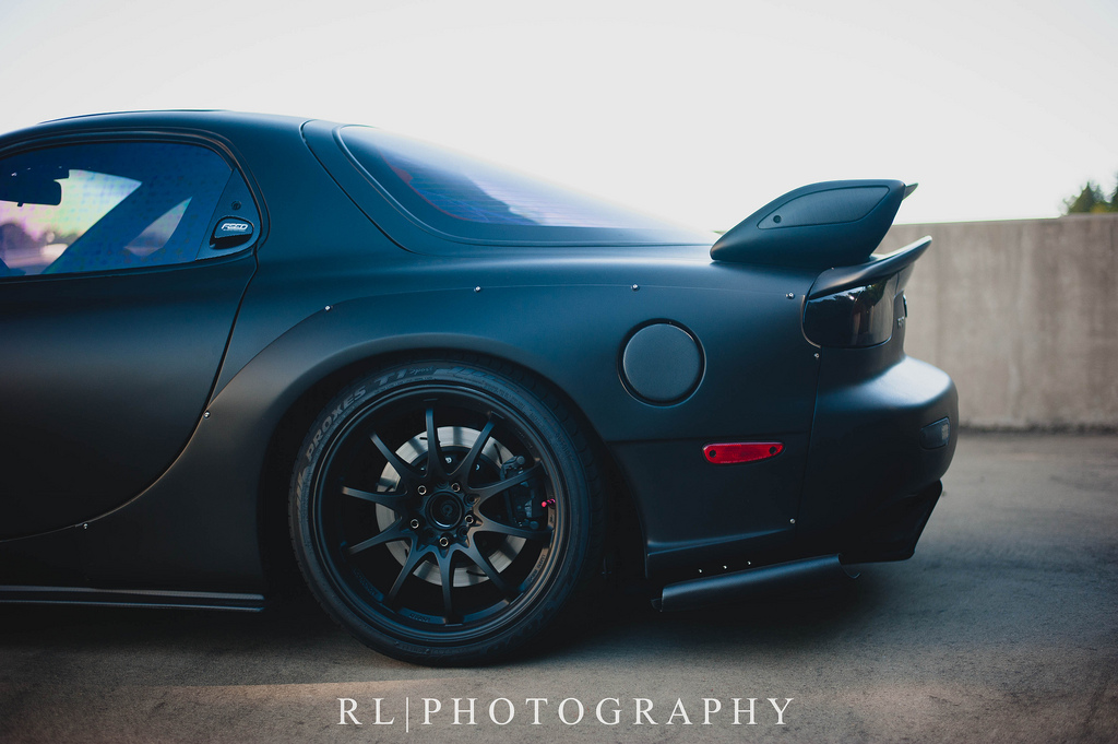 This beautiful, flat-black, FEED equipped RX7 looks like it could be Batman’s alternative transportation!