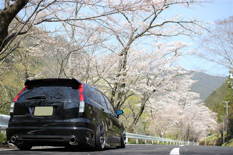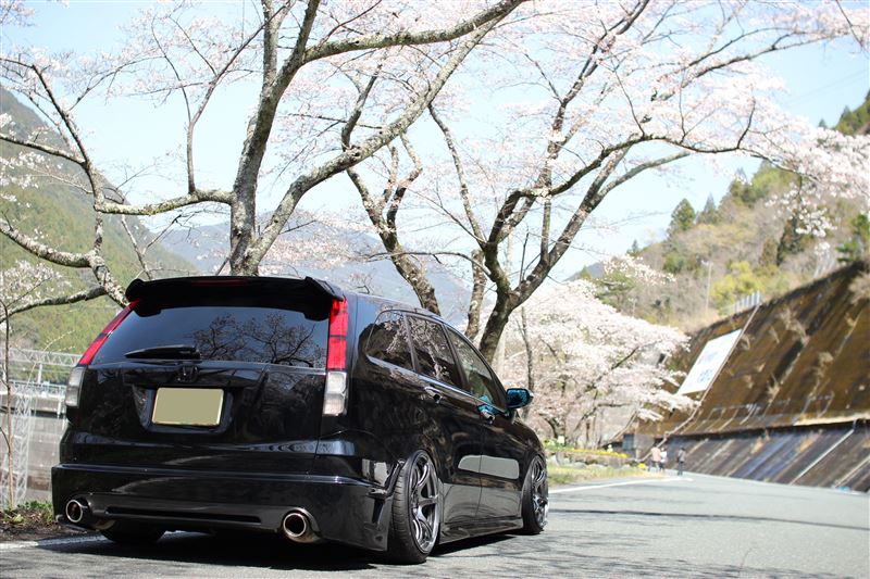 Posted this Honda Stream on the blog before, but this is one of my favorite vans of all time and I love this new set with the cherry blossoms in the background to give a nice visualization of spring in Japan. One of the things that I love most about this car is how the owner decide to go with a more sporty look versus the usual VIP look that people love with vans. The perfect fitment, height, and the combination of the Advan RGIII and Rotora BBKs really sets the car off nicely.