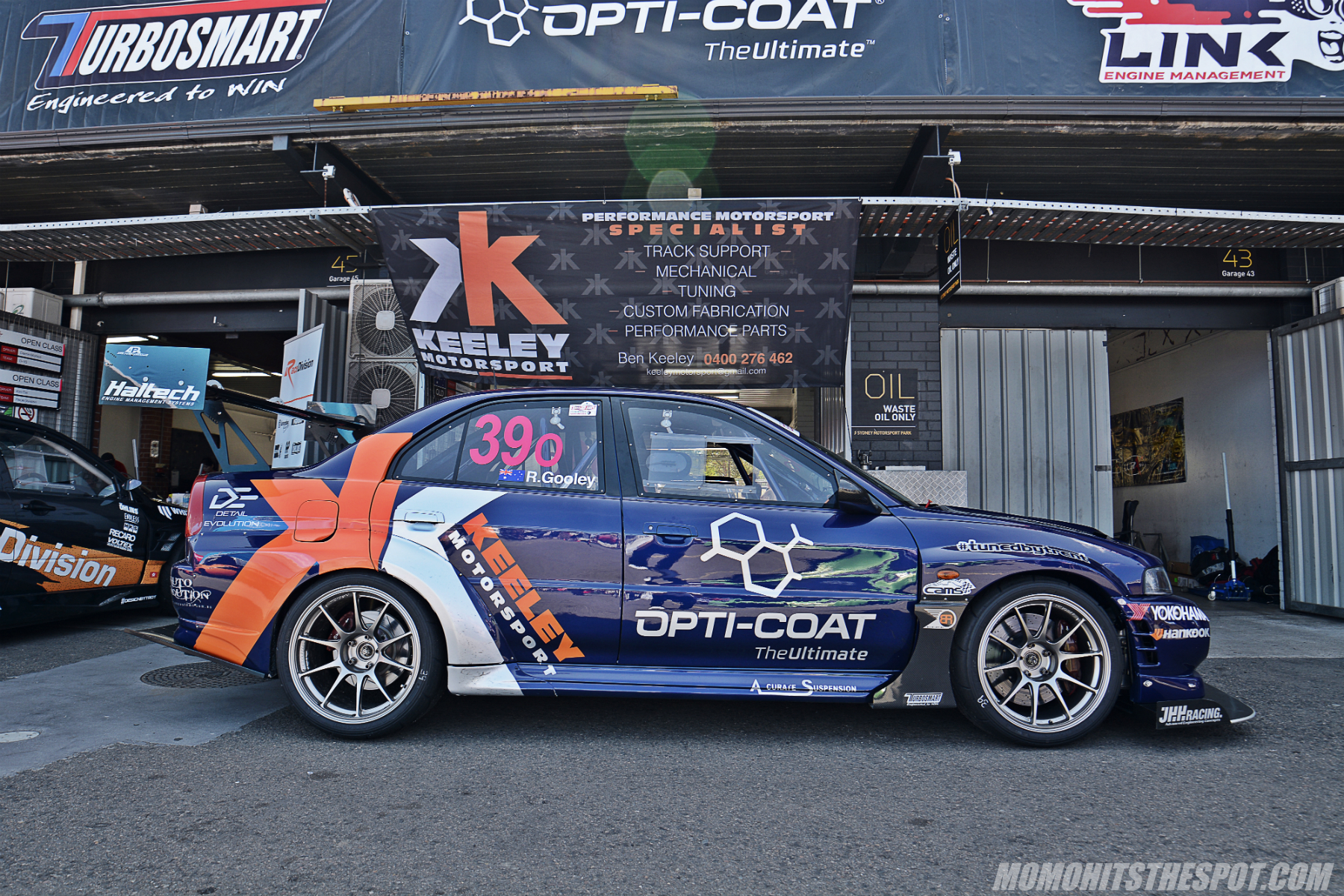 The Opticoat/Keeley Motorsports Evo 6 was conveniently placed outside the pits for some good photo op.