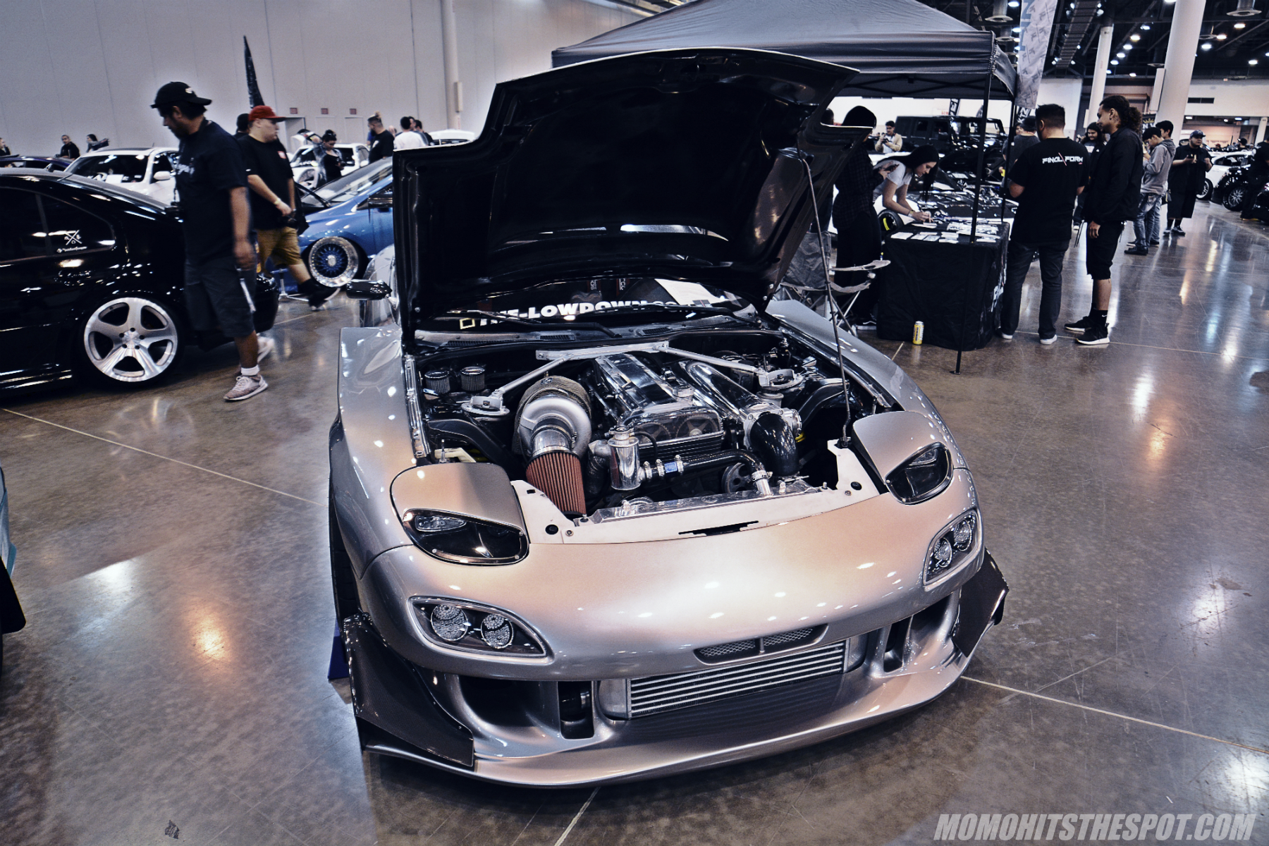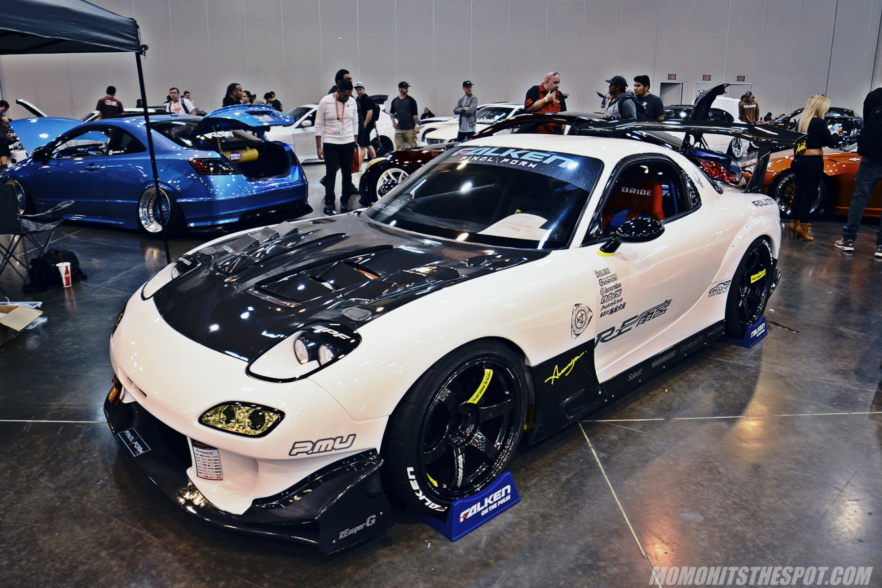 And my favorite FD of them all, coming all the way from New Jersey. This one takes the cake for me because I love the choice of parts and the execution of the whole car as a whole. From the neon green SL stickers on the TE37 SAGAs, to the vented rear bumper and small details like carbon wing stands and of course the whole RE Amemiya kit… Everything on this car seems meticulously thought out and well presented, a perfect build in my eyes.