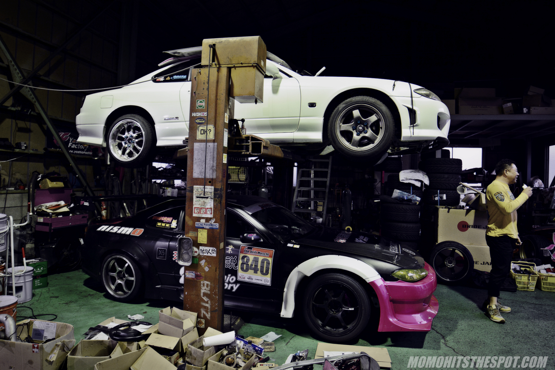Moving back outside the shop, S-chassis’ can be seen lined up on the other side of the garage.