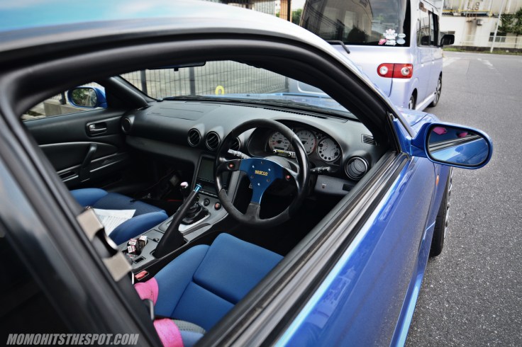 The blue Bride buckets and blue Sparco steering wheel is nicely matched with the exterior.