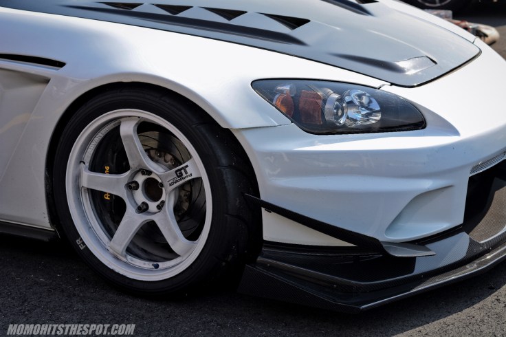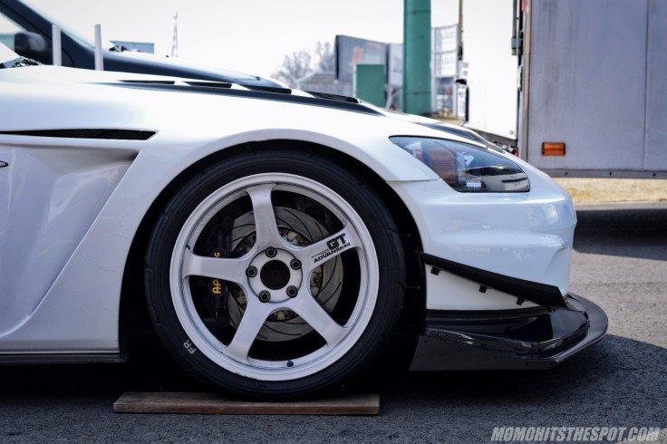 A closer look at the footwork reveals a set of white Advan GTs wrapped in some trusted Advan A050 tires and AP Racing BBKs that can stop a freight train. And although the Amuse Legalo front from before provided a more cleaner, street-able look, you can clearly see the aerodynamic differences between the Voltex and Amuse pieces. Therefore, with the improved aerodynamics and 320HP on tap, the car was able to lap a best of 59.837 on the day which is quite impressive for a street car.