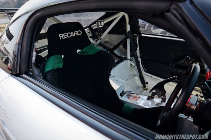 Interior wise, it’s all track oriented business with a single Recaro bucket, a full cage for added safety and a host of gauges to monitor engine essentials.