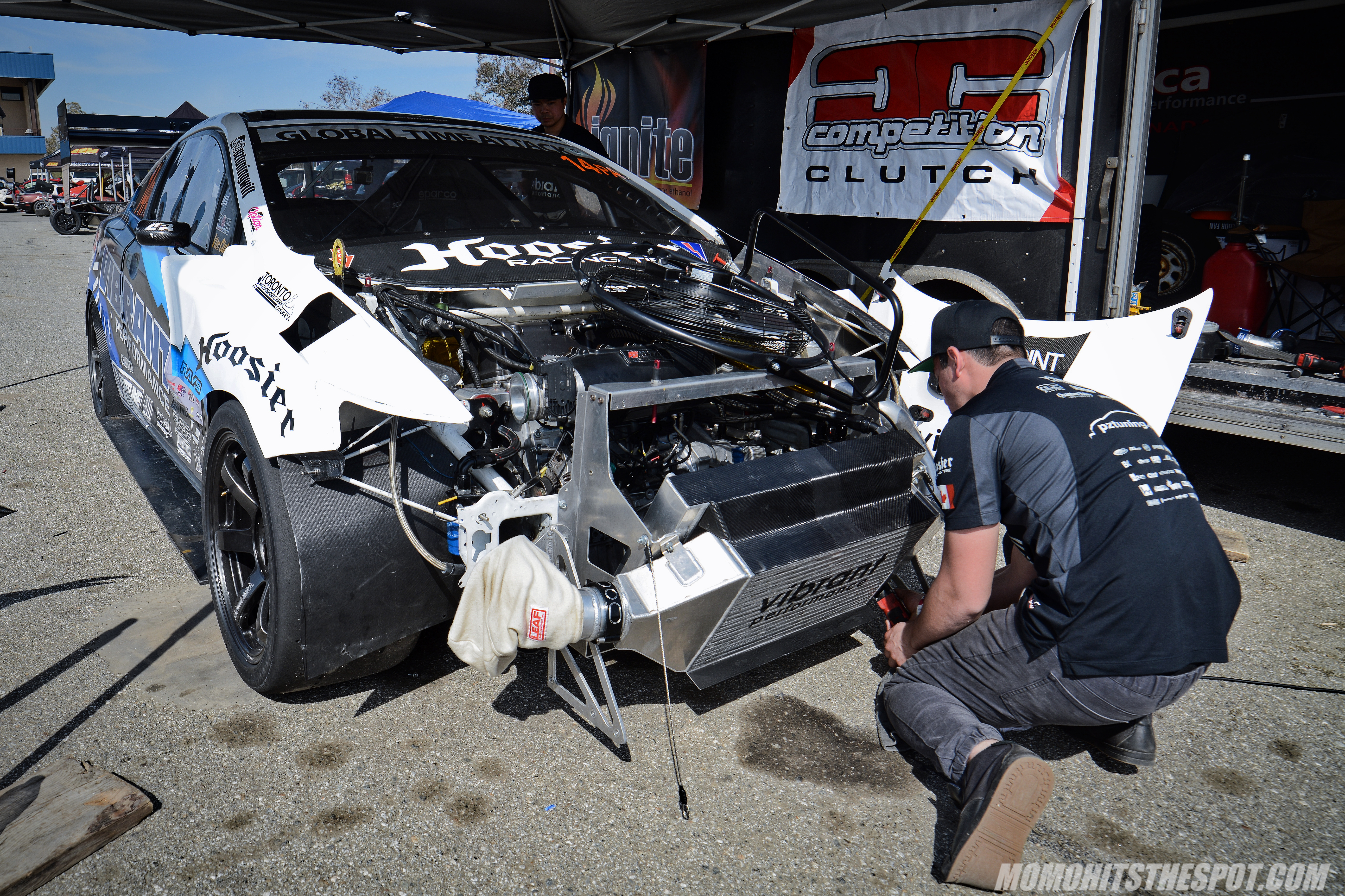 I gotta be honest, it’s been a long while since I’ve been excited to attend a North American time attack event, but there were a few cars that I was pretty eager to see compete at Buttonwillow for the GTA season opener. One of these was the Vibrant Performance, or PZ Tuning Honda Civic, or however you want to call it… I’ve seen both terms thrown around but I like to use the Vibrant Performance term. Anyways, it was a pleasure to see the Civic competing again, the last time I saw the car was during World Time Attack Challenge in Sydney last October where it had a heated competition with the 101 Motorsport “Mighty Mouse” CRX. For the 2018 attack season, I’ve heard their K24 power plant got a power boost and numbers are up to an incredible 800HP. On the aero department side, the Civic got a subtle facelift thanks to a new front bumper, but as we all know subtle can net huge gains in the world of racing. With these subtle changes came lap records… and boy did the mighty Civic put on a show! I actually left the venue after they broke the overall record with a 1:38.755 right before lunch time but they went on to set an even faster time with a final run of 1:37.308, dismissing the GST Motorsports record by more than a second. Did I mention this was all done by a 2012 Honda Civic… a FWD platform. Simply crazy…