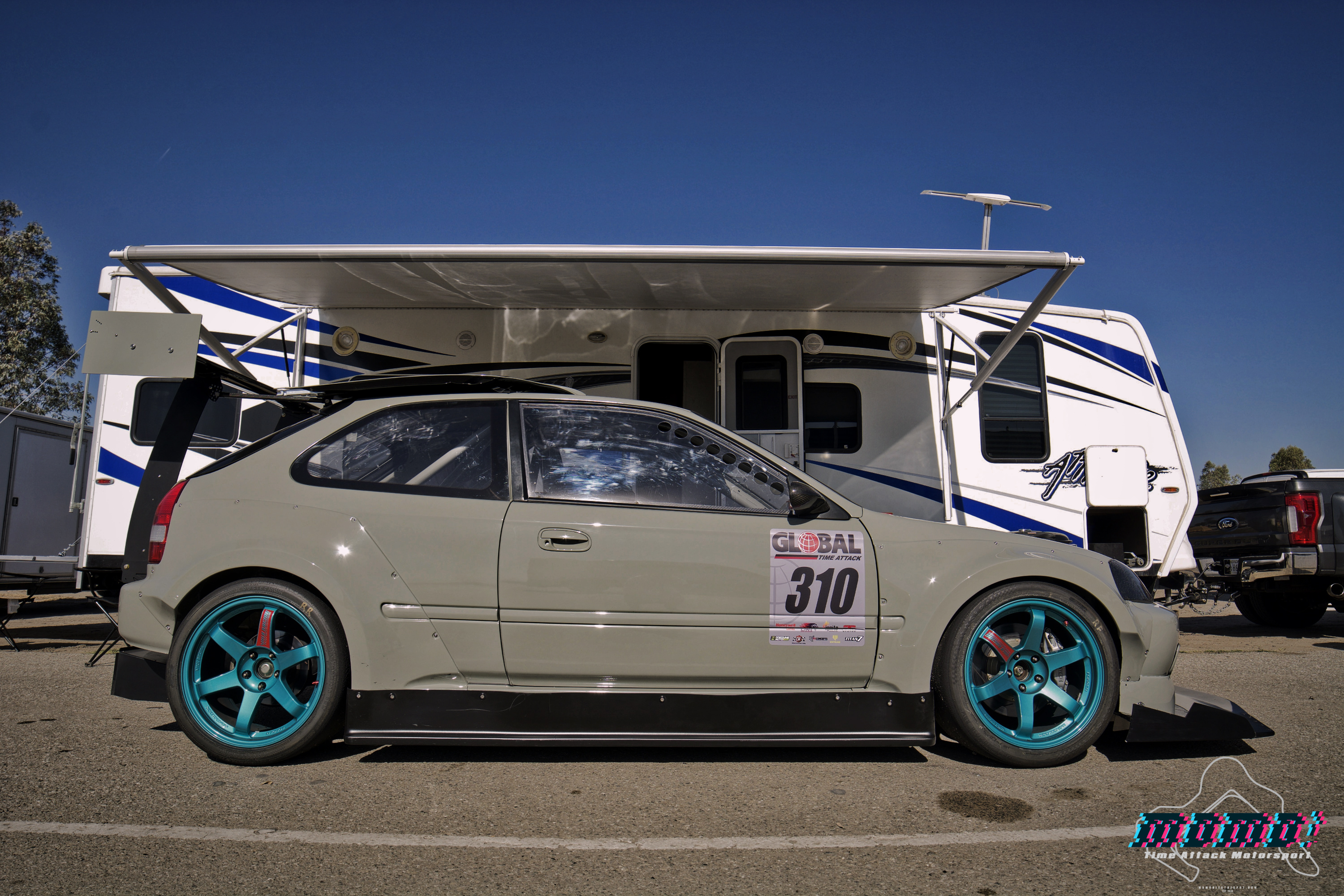 The M&M Honda Racing wide body looks absolutely gorgeous on this EK, and the fact that the car is lacking any livery really shows off its beautiful lines.