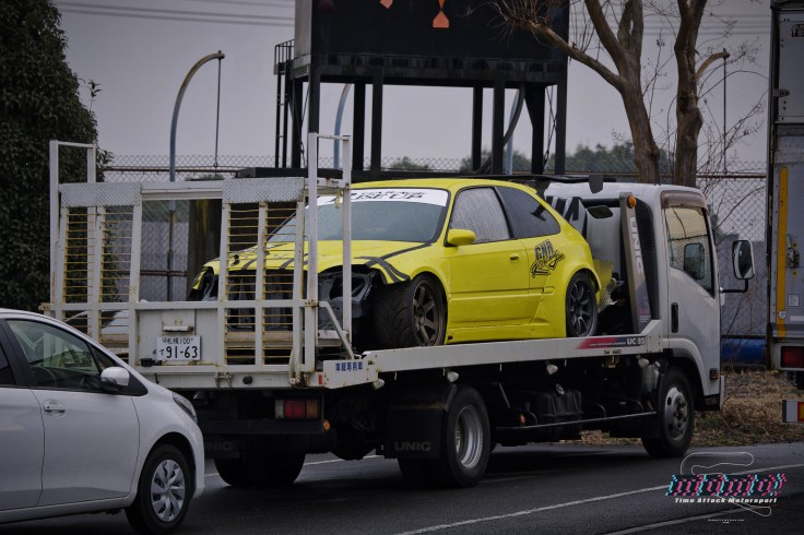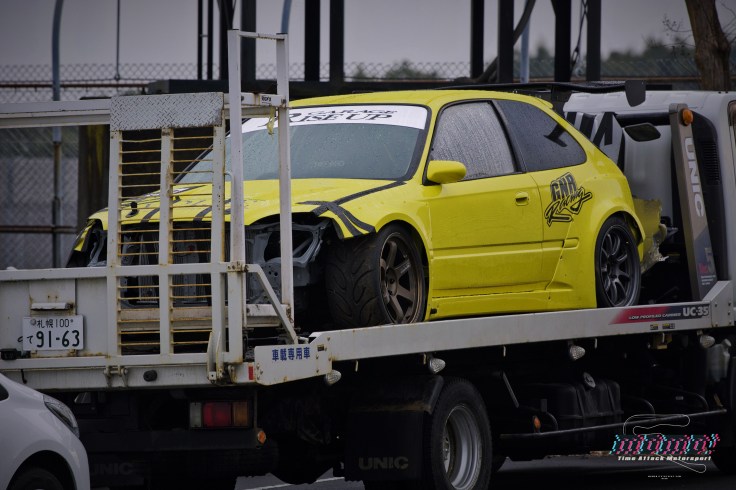 I missed out on the Zummy Racing Family event on Friday before Attack Tsukuba, but the GNR Racing EK suffered an off track incident that resulted in some significant damage to the car. Driver was okay but as you can see, the car is sidelined indefinitely for the foreseeable future.