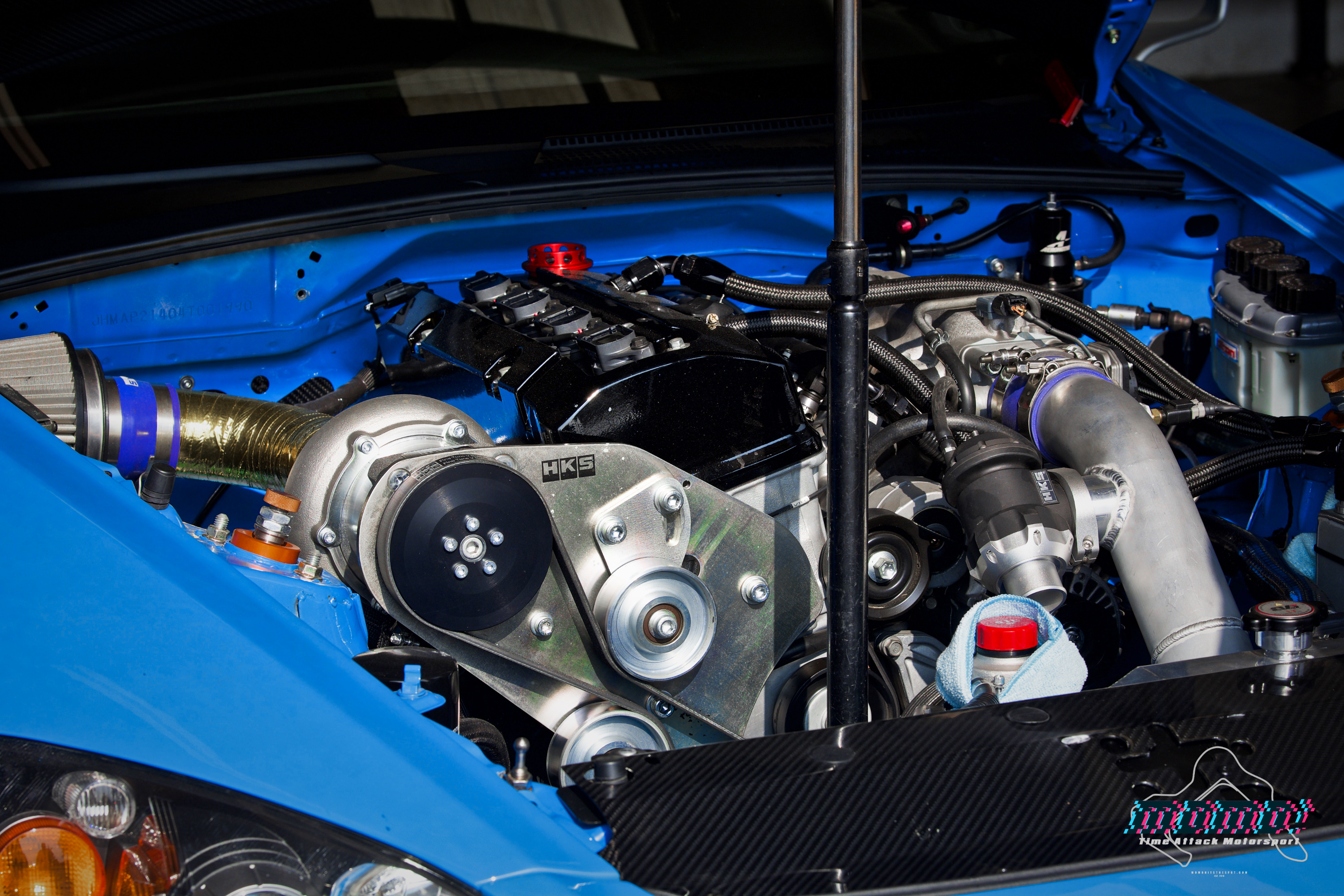 An HKS Rotrex supercharger mated to a stroked 2.35L F-series is the heart and soul of this build. I believe the car is pushing somewhere around 500HPs. Definitely not the highest horsepower car you’ll see out there, but it’s all about balance.